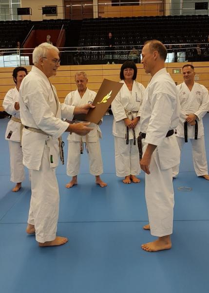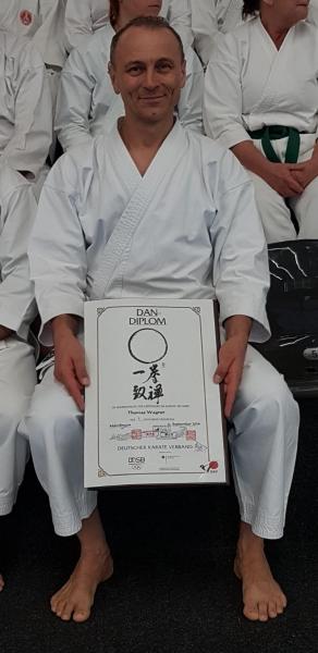 Diese Leistungen ermöglichten ihm, überhaupt bei dieser hohen Dan-Prüfung antreten zu dürfen. Denn dafür muss ein signifikanter Beitrag zur Karate-Gemeinschaft geleistet worden sein. Wir gratulieren Thomas zu dieser herausragenden Leistung und bedanken uns für sein Engagement und seine Unterstützung.